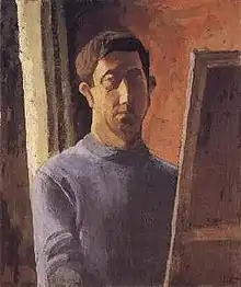 Mainly a landscape painter, his style can be considered as neo-figurative although his synthesis of forms leads a considerable abstract approach to nature depiction. He employed a bold style, often using strong shades of green, browns and grey, in producing mainly urban landscapes, as well as abstract still-life work. His landscapes were always meditative and silent with an "earthy" feeling within it (often only one quarter of the painting is occupied by the sky) using for example in his preparatory studies close-up photographs of particular rocks that would later form mountains or rocky landscapes.[1]