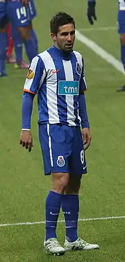 In 2006–07, following the departure of veteran Ricardo Sá Pinto, Moutinho was made vice-captain at just 19 years of age.[13] The following season, after Custódio and Ricardo also left, he would be named captain, the second youngest in the history of the club's professional football, behind first captain and associate founder Francisco Stromp.[14][15]