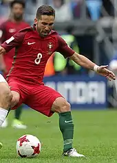 After six appearances out of a possible seven to help his nation win the European Championships for the first time ever,[66][67] Moutinho was also picked for the 2017 FIFA Confederations Cup squad by Fernando Santos.[68] In the latter competition, in the final group stage game in Saint Petersburg, he won his 100th cap by playing the full 90 minutes in the 4–0 defeat of New Zealand.[69][70]