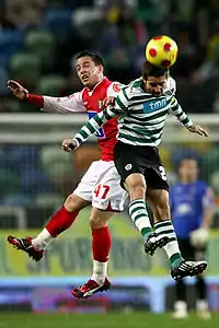 In 2008–09, after an aborted deal with Premier League club Everton,[16][17] Moutinho was again ever present, only missing three league matches (43 overall appearances) as Sporting finished once again runners-up; he also had the dubious distinction of netting his side's only goal in the Champions League round of 16 clash against FC Bayern Munich, a 1–12 aggregate loss.[18]