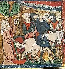 According to the Chroniques de Hainaut, the governor of Flanders and Hainaut Arnulf of Gavre would have recognized his uncle Josse Materne, who was now a Franciscan friar at Valenciennes. In his questioning to him, he would have learned that Baldwin IX and his companions were able to escape from the Bulgarians after twenty years of captivity.[10] The Chronique rimée of Philippe Mouskes reported at the same time that a mysterious stranger distributed large sums of money announcing the return of Baldwin.[10] In 1225, a hermit living near Mortagne-du-Nord, in the forest between Valenciennes and Tournai, claimed to be Baldwin IX. He claimed the restitution by Joan of his rights to the counties of Flanders and Hainaut.[11]