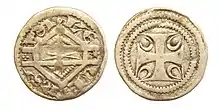 - ↑ Rénier Chalon: Recherches sur les monnaies des comtes de Hainaut, Brussels, librairie scientifique et littéraire, 1848, p. 23.