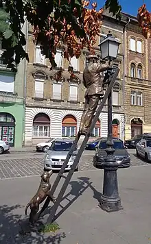 Lamplighter Monument in Budapest, Hungary, an occupation that was replaced by job obsolescence