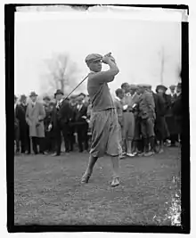 Kirkwood's success led him to England and Europe where, in his first competition, he defeated the great Harry Vardon. He began playing on the professional tour in the United States in 1923, winning that year's Houston Invitational, and was the first Australian to win on what became the PGA Tour. In 1924, he was one of the top-ranked golfers on the tour with five victories, three of which were consecutive. Kirkwood remains co-holder of the record for the widest winning stroke margin in PGA Tour history, set at the 1924 Corpus Christi Open in Texas.[1] That year he also teamed up with Walter Hagen to begin travelling around the globe putting on golf and trick-shot exhibitions, newsreels of which were sent back home to be shown in cinemas around the U.S.