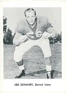 - ↑ "Joe Schmidt Bio". Pro Football Hall of Fame. Retrieved October 14, 2016.
