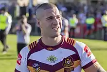 On 13 February 2016, Thompson played for the Indigenous All Stars against the World All Stars, starting at second-row in the 12–8 loss at Suncorp Stadium.[28] In round 2, after St. George's woeful 30–2 loss to arch rivals the Cronulla-Sutherland Sharks at Shark Park, Thompson taken to Twitter to have a rant about his frustration lack of post-match security after his wife and daughter were intimidated in the car park by a drunken Sharks supporter, saying in his tweet, "Happy to cop abuse especially after that game", ”Drunken Sharks fans are a disgrace, Coming over threatening to piss on my car, Swearing in front of my two-year-old girl. Hard to take in front of my family. You're very lucky there are consequences if I reacted how I wanted to, I'm filthy."[29] On 2 August 2016, Thompson extended his contract with the Dragons to the end of the 2018 season.[30] In Round 25 against the Parramatta Eels, Thompson played his 150th NRL career match in the club's 30–18 loss at Parramatta Stadium.[31][32] Thompson finished the 2016 NRL season with him playing in 20 matches and scoring 3 tries for the Saints.