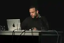 Grimonprez made his international debut on the art circuit at the documenta X in Kassel with his Dial H-I-S-T-O-R-Y in 1997.[46] Ten years later, the first retrospective of his work, Johan Grimonprez - Retrospective 1992–2007, was exhibited at the Pinakothek der Moderne in Munich, 2007.[47] It's a Poor Sort of Memory that Only Works Backwards followed as the first large-scale retroperspective of Grimonprez in his home country, Belgium, in the Stedelijk Museum voor Actuele Kunst (SMAK) in Ghent, 2011–2012.[48] Artforum described the exhibition as "an unfamiliar archive [...] from the perception of fragments to the awareness of a common mentality, from the multiplicity of words to the emergence of a discourse".[49] Several artists, among Roy Villevoy, Jan Dietvorst and Adam Curtis, were invited to contribute to this exhibition. A prominent aspect in Grimonprez's work is the sky: "a canvas on which man has always projected his mystical aspirations, his political and economic struggles, and his poetic imaginings. They abstract spaces into which the very real histories of contemporary societies are woven".[49] According to Artforum, the critical dimension of Grimonprez's work follows close behind the "aesthetic of disaster and terror and the virtues of channel surfing in order to plunge the viewer into a state of genuine fascination".[49] Using repetition and delay, Grimonprez works towards a second glance; a double take - just like his feature-length film Double Take (2009), and "the state of confusion in which we are kept by the media machine".[49] Artforum states that Grimonprez "does not harangue us with denunciations but rather suggests that we reconsider the short circuits of this machine, of which we briefly catch glimpses".[49] It's a Poor Sort of Memory that Only Works Backwards also exhibited at the Blaffer Art Museum in Houston, 2011[50] and the retrospective Johan Grimonprez exhibited in The Fruitmarket Gallery in Edinburgh, 2010.[51][52]