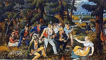 • Die Gefangennahme der Räuber (Rosenbergerbande) (Capturing the Robbers), 1822, Gouache, private collection