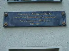 Plaque noting the Bismarck linden in a garden where the Plamann Educational Institute (German: Plamannische Erziehungsanstalt) was located.