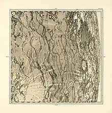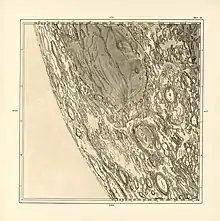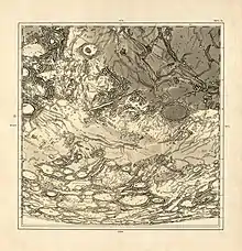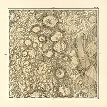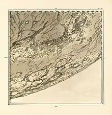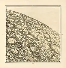 Here, he confined himself to drawing parts of the lunar landscape instead of the entire face, using the method of drawing the same area under different lighting conditions or sun angles, the same one Schröter used. The drawing of entire phases was stopped from this point forward.[4]