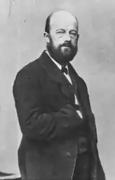 Photograph of Julius Schmidt standing in a suit. He has no hair, but has a dark beard.