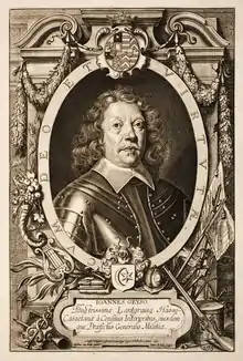 Johann von Geyso (1593 – 1661) was a German nobleman and General-Lieutenant, who fought during the course of the Thirty Years' War. After studying in a Dutch military academy, Geyso fought as a mercenary in the armies of Sweden, Bohemia, Denmark and the German Protestant Union. In 1628, having gained significant experience in warfare he returned to his native Hesse-Kassel which he served until the end of the Thirty Years' War, reaching the rank of commander in chief of the Langraviate's forces and becoming ennobled.