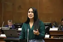 She became a member of the Democratic Left party and she was their candidate for the province of El Oro. In 2021 when she was elected she was the youngest member of the National Assembly of Ecuador. She was elected to the fourth position on the Legislative Administration Council on 15 May 2021 after being proposed by her Democratic Left colleague Xavier Santos. Her position was confirmed with 70 votes in favour although 53 members abstained.[2]