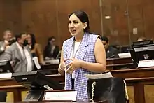 On 20 April 2022 she was excluded from the Democratic Left by Guillermo Herrera who is the party's National President. Moreira had been accused by another assembly member from her party, Yeseña Guamaní, of not supporting the party line. Guamani and Herrera believed that she should have acted differently during a debate in the Legislative Administration Council about the President Guadalupe Llori's alleged breach of duties.[3] The expulsion of Moreira is at some cost to her former party as they now have only thirteen members which means they are no longer eligible for some privileges. Moreira had been unpopular before the expulsion because she and Alejandro Jaramillo had supported a proposal to allow abortion in the case of rape victims.[4] This had been controversial within the party.[5] Alejandro Jaramillo had already been ejected from the party before Moreira's expulsion.[4] Amada Ortiz, another fellow party member, left the party after a dispute in May 2021.[6]