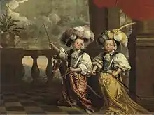 • A double portrait of two boys, full-length, dressed as knights, one holding a flute, the other on a hobby-horse holding a whip, both standing on a balcony, oil on canvas, 1668, Christie's Amsterdam, sold 6 May 2008 for €120,250, lot nr. 180[5]