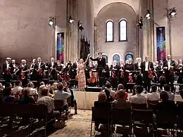 Wallroth appeared at the 2023 Rheingau Musik Festival in a concert at Eberbach Abbey of Mahler's Fourth Symphony, with the Oslo Philharmonic conducted by Klaus Mäkelä.[7] A reviewer from the FAZ wrote about an approach of both depth and lightness,[8] while a reviewer from the Frankfurter Rundschau noted her grandiose interpretation of the music's absurdity and lust ("Irrwitz und Lust").[8]