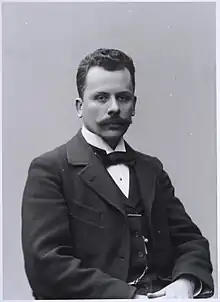 Johannes Wilhelm Öhquist (December 6, 1861 in Venjoki, Ingermanland - October 15, 1949 in Wolfach, Baden, Germany) was a Finnish civil servant, language teacher, art historian and politically active writer.[1] He promoted cultural relations between Germany and Finland and disseminated information about Finland in German. He later sought to spread the idea of Nazism to Finland. Johannes Öhquist was the father of Lieutenant General Harald Öhquist.