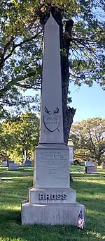 John Armstrong Bross (February 21, 1826 – July 30, 1864) was a Colonel in the Union Army during the United States Civil War who died while leading the 29th Colored Infantry, part of the 88th Illinois Infantry, against Confederate troops. This occurred during the Battle of the Crater at the siege of Petersburg in Virginia. As he departed to fight in his final battle, Bross said: “If it is the will of Providence that I do not return, I ask no nobler epitaph than that I fell for my country at the head of this black and blue regiment.” (Blue, as in, for the Union army).[1]