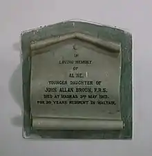 Memorial tablet for Broun's daughter Aline
