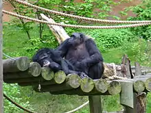 Chimps in the Mokomboso Valley Chimpanzee Exhibit.