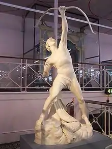 In 1837, the year in which Bell established his reputation, his works at the Academy included Psyche and the Dove and a model of The Eagle-Shooter, the first version of what was to become one of his most celebrated statues;[2][3] he also exhibited two busts, Amoret and Psyche, at the British Institution. [2] His Babes in the Wood was exhibited at the Royal Academy summer exhibition two years later. There are marble versions at Osborne House, and Norwich Castle.