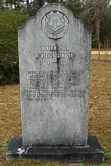 Lt. Colonel John Bond Jr. (1770 − October 22, 1862) was an American military officer, Mississippi pioneer, and Mississippi Legislator.