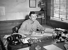 He was responsible for the supplying of units in San Diego with weapons and ammunition, including their procurement and maintenance until February 1944, when he was ordered back to Hawaii for duty as Commanding officer, 3rd Battalion, 8th Marines attached to 2nd Marine Division under Major General Thomas E. Watson.[5][1]