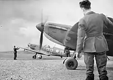 Curchin's acting rank of pilot officer was confirmed on 6 April 1940 although he remained on probation.[5] His first operational posting was to No. 600 Squadron;[3] his new unit was based at Northolt at the time and flew the Bristol Blenheim long-range fighter in a night fighter role.[6] On 11 June Curchin was transferred to No. 609 Squadron,[4] also at Northolt but equipped with the Supermarine Spitfire fighter. It had been heavily engaged in covering the evacuation of the British Expeditionary Force from Dunkirk.[7] The following day, his probationary period ended and his pilot officer rank was made substantive.[8]