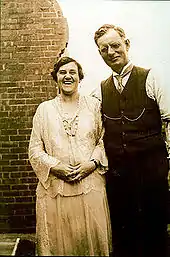 He wrote for radical and socialist newspapers.[22] From 1911 until 1915, Curtin was employed as state secretary of the Timberworkers' Union. He was elected federal president of the union in 1914. During World War I he was a militant anti-conscriptionist; he was briefly imprisoned in December 1916 for refusing to attend a compulsory medical examination,[23] even though he knew he would fail the exam due to his very poor eyesight.[24] He also stood (unsuccessfully) as the Labor candidate for Balaclava in the 1914 federal election.[25][26] The strain of this period led him to drink heavily and regularly, a vice which blighted his career for many years.[27] He proposed to Elsie Needham on St Kilda Beach,[24] and they were married on 21 April 1917 in the dining room of a private home in West Leederville.[28][29]