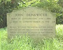 John Drinkwater (1 June 1882 – 25 March 1937) was an English poet and dramatist. He was known before World War I as one of the Dymock poets, and his poetry was included in all five volumes of Georgian Poetry (edited by Edward Marsh, 1912–1922). After World War I, he achieved fame as a playwright and became closely associated with Birmingham Repertory Theatre.[1]