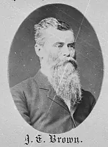 John Evans Brown (16 February 1827 – 9 July 1895) was a 19th-century Member of Parliament in New Zealand.[1] Born in Pennsylvania, he came to New Zealand after spending time in Australia, where he was a farmer and US Consul. He farmed in Canterbury, where he was known as "Yankee" Brown. Three of his brothers in law, through his first wife, served as his fellow Members of Parliament. He married a second time, as his first wife died young, and moved back to the United States. On his father's land in Asheville, he came to considerable wealth due to the mining of mica.