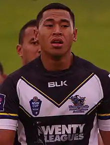 In 2015, Folau moved on to the Eels' New South Wales Cup team, Wentworthville Magpies.[11] In Round 3 of the 2015 NRL season, he made his NRL debut for the Eels against the New Zealand Warriors.[12] On 4 April 2015, he re-signed with the Eels on a 2-year contract.[13] In May 2015, Folau was named 18th man for Tonga against Samoa in the 2015 Polynesian Cup.[14]