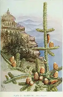 Abies frasieri (Fraser Fir), named for John Fraser, is native to the southeastern Appalachian Mountains.