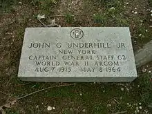 He died on May 8, 1964, at his home on 3035 M St, NW in Washington, D.C. After his death he was buried in the Underhill Burying Ground in Lattingtown, New York.[18] His wife Patricia D. Underhill died on December 15, 1973. A memorial service was held in her memory at Christ Church, Washington, D.C.[19] John Garrett Underhill III lived at 10220 Memorial Dr. in Houston, Texas. An obituary for him ran in the March 22, 1987 issue of the Houston Chronicle, Section 2, Page 15.