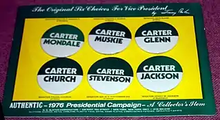 At 42, Glenn was the oldest member of the astronaut corps and would likely be close to 50 by the time the lunar landings took place. During Glenn's training, NASA psychologists determined that he was the astronaut best suited for public life.[118] Attorney General Robert F. Kennedy suggested to Glenn and his wife in December 1962 that he run for the 1964 United States Senate election in Ohio, challenging aging incumbent Stephen M. Young (1889–1984) in the Democratic primary election. As it seemed unlikely that he would be selected for Project Apollo missions,[76] he resigned from NASA on January 16, 1964, and announced his Democratic Party candidacy for the U.S. Senate from his home state of Ohio the following day,[119] becoming the first astronaut-politician.[120] Glenn was still a Marine, and had plenty of unused leave time. He elected to use it while he waited for his retirement papers to go through.[121]