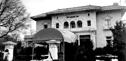 John H. Adams House, also known as Davis Funeral Home, is a historic home located at High Point, Guilford County, North Carolina. It was built in 1918, and is a two-story, five-bay, stuccoed frame structure in the Italian Renaissance style. It has a low pitched, deck-hipped roof with terra cotta, widely overhanging boxed eaves, and a three-bay recessed upper porch or loggia with semi-circular arches.[2]