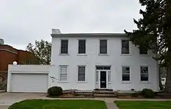 The John H. Shoemake House, also known as the Shoemake-Muhl House, is a historic residence located in Oskaloosa, Iowa, United States. A native of Tennessee, Shoemake was a local businessman and local politician who settled in Mahaska County from Illinois in 1848. He had this two-story brick residence built in 1852 at a time when most houses in the area were built of wood.[2] It follows the I-house plan, and it features Federal style elements that are found in the stepped gables, the massing of chimneys in pairs, and its overall symmetry. It was built with a flat roof, which was not unusual in Oskaloosa at the time.[2] The gable roof was added sometime after 1869. The house was listed on the National Register of Historic Places in 1984.[1]