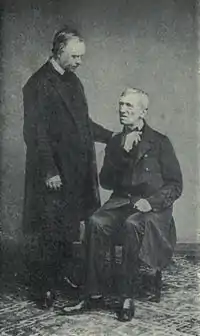 Newman was at home again in Oxford on 9 July 1833 and, on 14 July, Keble preached at St Mary's an assize sermon on "National Apostasy", which Newman afterwards regarded as the inauguration of the Oxford Movement. In the words of Richard William Church, it was "Keble who inspired, Froude who gave the impetus, and Newman who took up the work"; but the first organisation of it was due to Hugh James Rose, editor of the British Magazine, who has been styled "the Cambridge originator of the Oxford Movement".[40] Rose met Oxford Movement figures on a visit to Oxford looking for magazine contributors, and it was in his rectory house at Hadleigh, Suffolk, that a meeting of High Church clergy was held over 25–26 July (Newman was not present, but Hurrell Froude, Arthur Philip Perceval, and William Palmer had gone to visit Rose),[41] at which it was resolved to fight for "the apostolical succession and the integrity of the Prayer Book".[40]