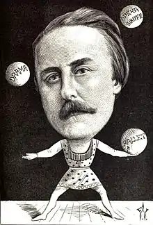 Hollingshead started his journalism career in 1854 under the tutelage of Charles Dickens at Household Words magazine and then under W. M. Thackeray at Cornhill Magazine.[5] In 1861, he acted as the "special correspondent" for The Morning Post during the London famine. He also wrote essays, short stories and dramatic criticism.[6] Beginning in 1864, and for several years thereafter, he contributed to Punch magazine, mostly writing on political topics related to social reform.[7] He advocated the principles of Mill and Jeremy Bentham. One of his best-known essays was an 1857 piece called "The City of Unlimited Paper", which became famous during the monetary panic of 1857.[1] In the 1860s he was on the staff of Good Words under Norman Macleod as editor.[8]