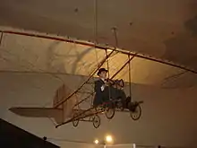 In the 1880s Montgomery, a native of Yuba City, California, made manned flight experiments in a series of gliders in the United States in Otay Mesa near San Diego, California.[8][9][7][10][11][12] Although not publicized in the 1880s, these early flights were first described by Montgomery as part of a lecture delivered at the International Conference on Aerial Navigation at Chicago, 1893.[13][14] These independent advances came after gliding flights by European pioneers such as George Cayley's coachman in England (1853) and Jean-Marie Le Bris in France (1856).[15] Although Montgomery never claimed firsts, his gliding experiments of the 1880s are considered by some historians and organizations to have been the first controlled flights of a heavier-than-air flying machine in America[16][14][17] or in the Western Hemisphere,[18][19][20][21][22][23][24][25] depending on the source.