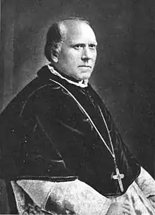 On June 19, 1853, Loughlin was appointed the first Bishop of the newly erected Diocese of Brooklyn by Pope Pius IX.[3] He, along with James Roosevelt Bayley, first Bishop of Newark, received their episcopal consecration on the following October 30 from Archbishop Gaetano Bedini, with Bishops John McCloskey and Louis Amadeus Rappe serving as co-consecrators.[1]