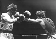 Lyon (left) versus René Breitbarth of East Germany in Rostock, 1985