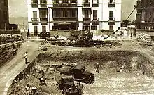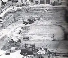 The construction of an air-raid shelter beneath John Mackintosh Square (then known as Commercial Square) in 1939 (looking west).