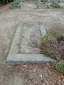 - ↑ A 2014 photograph reveals that MATHER is engraved on the face of the granite border stones, now obscured by the existing ground level. Findagrave.com accessed 24 Aug 2023