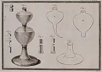 The instrument, which later came to be known as the Nooth apparatus, was based on one previously built by Joseph Priestley. Nooth argued that his device was superior because it was easier to use and, unlike Priestley's which used an animal bladder to contain the "fixed air", did not cause the water to taste of urine. Priestley took Nooth's criticism poorly at first;[4] in the second volume of his Experiments and Observations on Different Kinds of Air, he retorted that "when the Doctor shall once more produce this urinous flavour [...] taking care that no careless servant shall have mixed any urine in the water he calls for, I shall give this new objection to my process a farther examination. At present I am inclined to consider this as an experiment of the servant, rather than of the Doctor himself."[6] However, he would eventually come to recommend Nooth's apparatus over his own.[4]