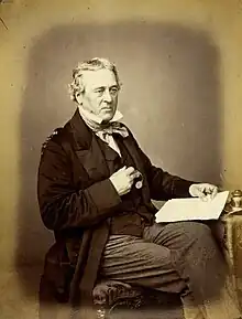 Nonetheless, from 1852 to 1865, outside Oldham he was generally taken to be a Liberal.[9] He contested Oldham as a Conservative in 1868 (unsuccessfully) and was elected as a Conservative at a by-election in 1872 - and was thereby the last MP in the UK to be elected by public (rather than secret) ballot.[2] From 1872 to his death in 1877, he sat as a Conservative (but one calling for annual Parliaments and manhood suffrage).[10][11]