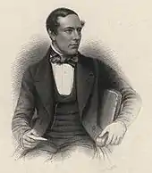 Nicholson was born on 11 December 1822 in Dublin, Ireland, the eldest son of Dr. Alexander Jaffray Nicholson and Clara Hogg, who were both descendants of Protestant Scottish settlers who had immigrated to Ireland as part of the Ulster Plantation.[6] Dr. Nicholson died when John was nine after contracting an illness from one of his patients, after which the family moved to Lisburn, County Antrim.[7] Nicholson was privately educated in Delgany and later attended the Royal School Dungannon, through the patronage of his maternal uncle, Sir James Weir Hogg, a successful East India Company lawyer and for some time Registrar of the Calcutta Supreme Court, and later a Member of Parliament.[8] He left school soon after his sixteenth birthday and, as the eldest male in his family, obtained a cadetship in the East India Company army's Bengal Infantry thanks to his uncle.[9] In early 1839, Nicholson spent several weeks under his uncle's tutorship in London, gaining an understanding of Indian matters, before departing Gravesend in mid February on the voyage to India where he would spend the majority of the rest of his life.[9]