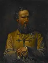 Nicholson never married, the most significant people in his life being his fellow Punjab administrators, especially his superior, Sir Henry Lawrence, whom Nicholson regarded as a father figure and who was deeply affected by Lawrence's death shortly before his.[62] Nicholson's closest friend was Herbert Edwardes, who shared his deep Christian faith. At Bannu, Nicholson used to ride one hundred and twenty miles every weekend to spend a few days with Edwardes, and lived in his beloved friend's house for some time when Edwardes' wife Emma was in England. Edwardes and his wife soon became a sense of comfort and spiritual guidance to an often isolated Nicholson.[63] At his deathbed, he dictated a message to Edwardes saying, "Tell him that, if at this moment a good fairy were to grant me a wish, my wish would be to have him here next to my mother."[64] The love between him and Edwardes made them, as Edwardes' wife later described it "more than brothers in the tenderness of their whole lives".[65] Upon learning of Nicholson's death, Edwardes wrote to Neville Chamberlain, eulogizing his friend as "So undaunted, so noble, so tender, so good, so stern to evil, so single-minded, so generous, so heroic and yet so modest. I never saw another like him, and never expect to do so. And to have had him as a brother, and now to lose him in the prime of his life. It is an inexpressible and irreparable grief."[66]