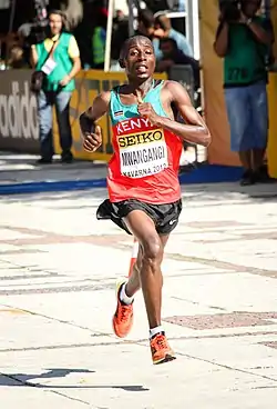 Born in Mwingi in Kenya's Eastern Province,[1] he had his first European race wins in 2008, taking the titles at the Greifenseelauf and Morat-Fribourg Murtenlauf races.[2][3] He first came to prominence in the 2009 season. After finishing as runner-up at the Kenya Prison Service cross country and 5000 metres championships,[4][5] he won the 20 km de Lausanne and 10-mile Grand Prix von Bern. He won his first international medal in August, taking the silver medal over 5000 m at the 2009 African Junior Athletics Championships. He then returned to the European road circuit and had a string of victories: he retained his Greifenseelauf and Morat-Fribourg titles, won the Route du Vin half marathon in a personal best of 60:36 minutes, and also won the shorter La Corrida Bulloise and Basel Stadtlauf races.[6]