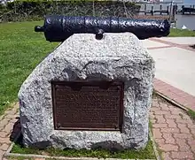 Memorial to O'Neill featuring a War of 1812 cannon marking the site of the Concord Point battery in Havre de Grace.